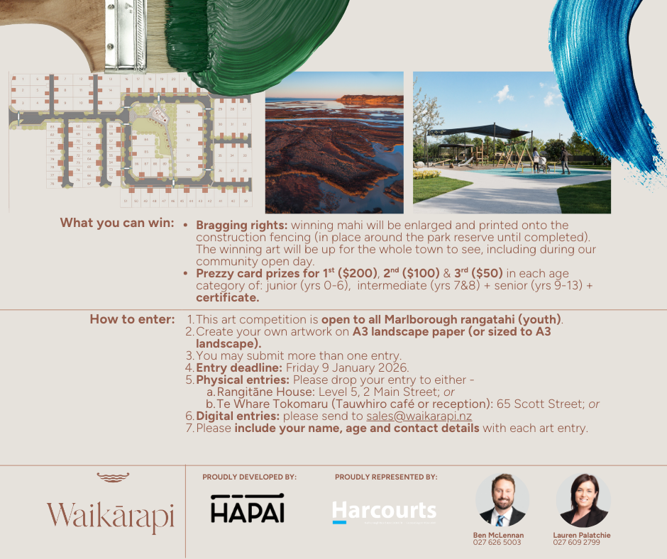 Young artists of Wairau! You are invited to submit your very own masterpiece, for display at Waikārapi.