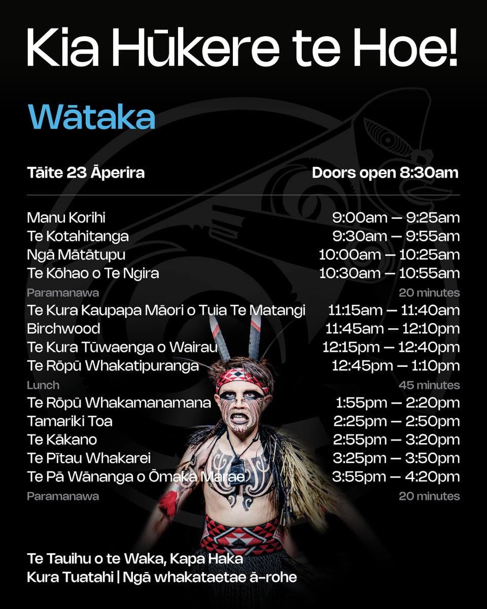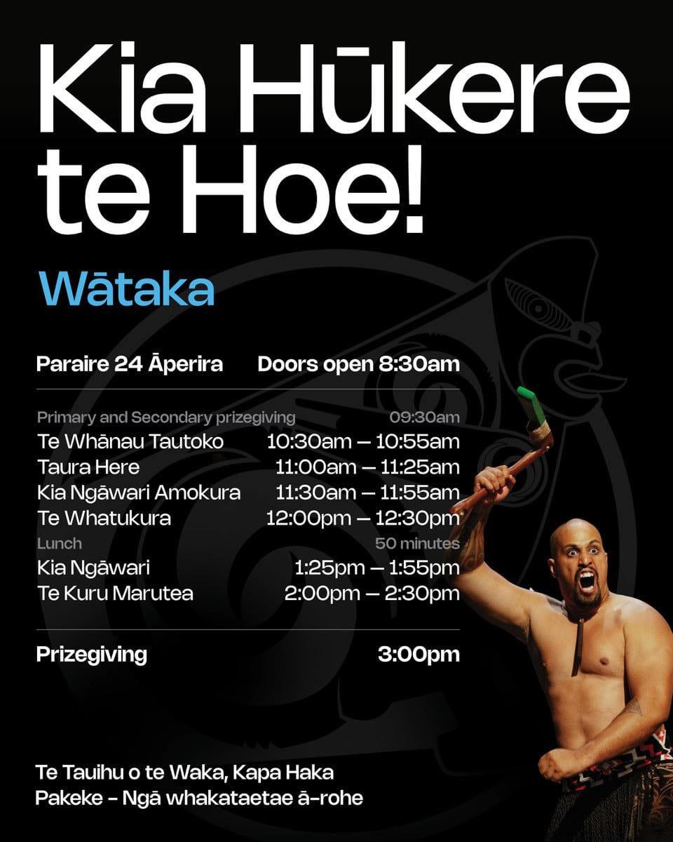 Kia Hūkere te Hoe is the regional qualifier for Te Mana Kuratahi Primary Nationals and Te Matatini, both being held in 2027. This year, our qualifiers are being held in Wairau.